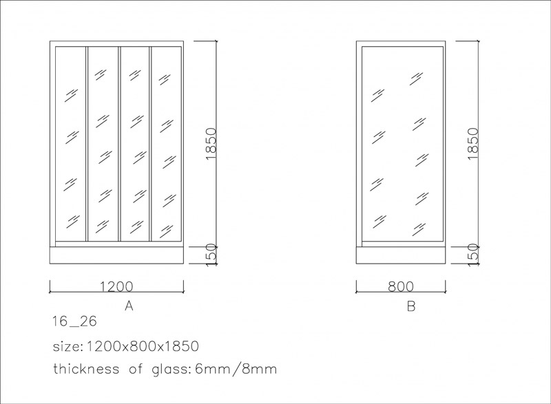 DR 16-26 có cấu tạo đơn giản từ 4 tấm kính cường lực ghép khít với khung tạo ra một tấm kính lớn để ngăn cách khu vực tắm với các khu vực vệ sinh khác. Kích thước 1200x1850mm vừa vặn cho không gian phòng tắm không có quá nhiều khoảng trống. Nhìn tổng thể DR 16-26 tuy đơn giản nhưng không kém phần sang trọng và hiện đại.