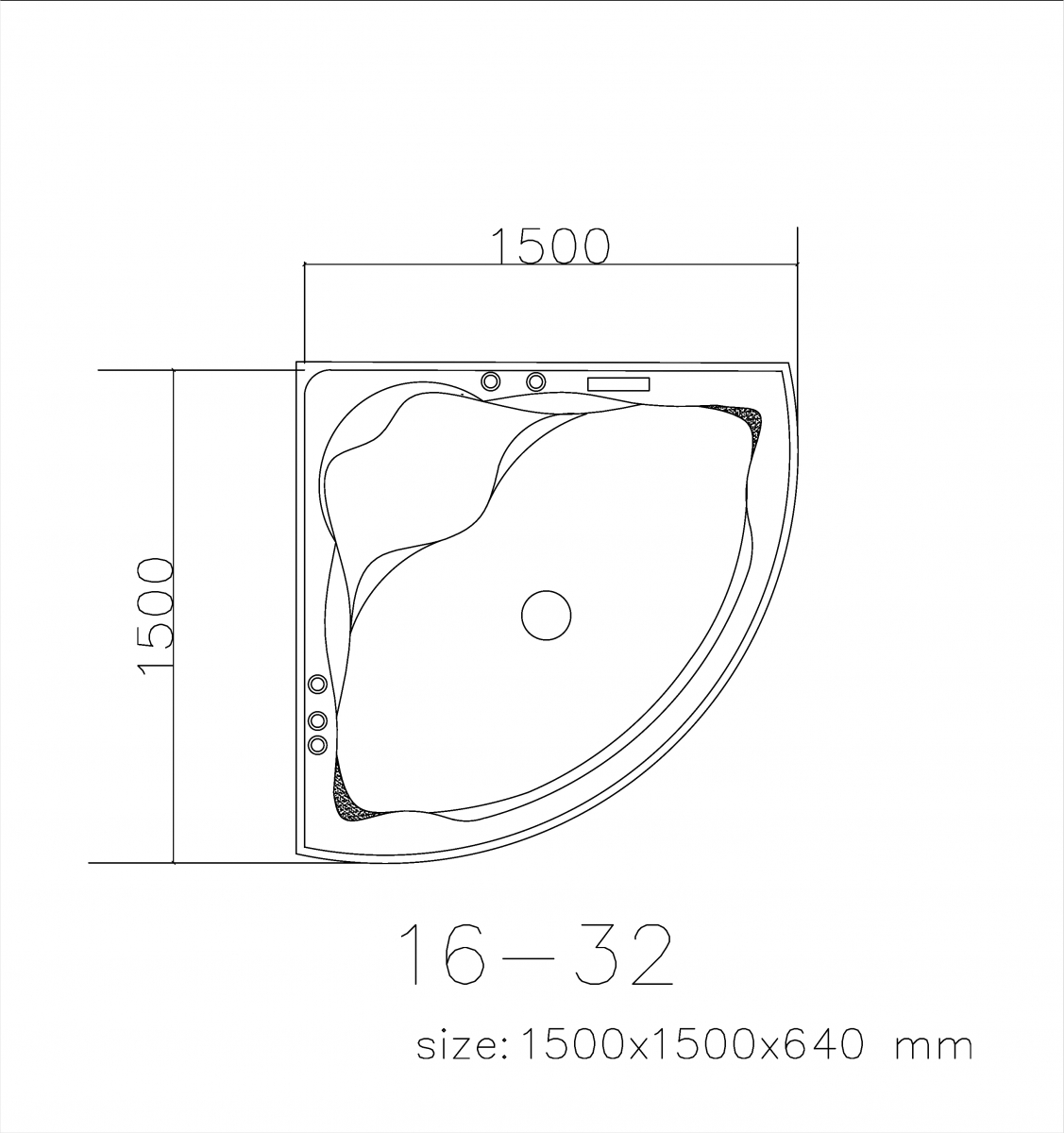 – 1500x1500x640mm