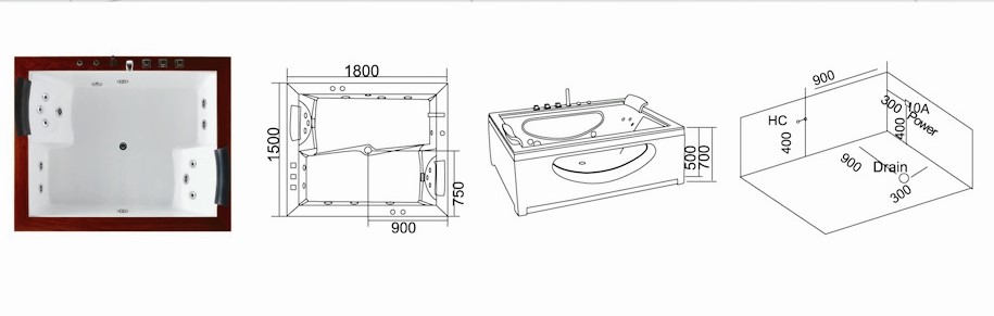 – Máy bơm, bộ họng sục massage, bộ tuần hoàn nước, sen cầm tay, vòi xả nước, gối đầu…