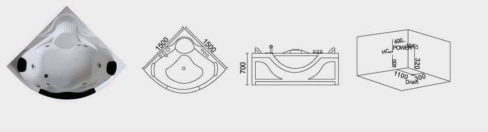 Bồn tắm massage Daros HT-43 có thiết kế áp vào góc tường với hình dáng vỏ sò nhỏ gọn, với kiểu dáng uốn cong mềm mại hơn so với bồn tắm massage HT-42 khiến mọi ánh nhìn đổ dồn về chiếc bồn tắm này. Kích thước 1500x1500x700mm tương ứng với chiều dài, chiều rộng và chiều cao, HT-43 vừa vặn cho không gian phòng tắm có diện tích trung bình.