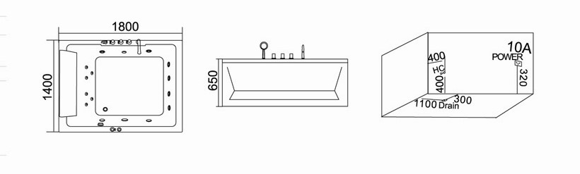 – Máy bơm, bộ họng sục massage, bộ tuần hoàn nước, sen cầm tay, vòi xả nước, gối đầu…
