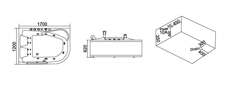 Bồn tắm massage Daros HT-50 gây ấn tượng ngay từ cái nhìn đầu tiên bởi kiểu dáng độc đáo. Vẫn là dáng bồn tắm chữ nhật truyền thống nhưng Daros đã khéo léo thiết kế một góc của chiếc bồn tắm này uốn nhẹ tạo sự mềm mại, thanh lịch nhưng vẫn rất thu hút người đối diện. Kích thước 1700x1200x630mm tương ứng với chiều dài, chiều rộng và chiều cao tạo không gian thoái mải cho hai người cùng sử dụng và tận hưởng cảm giác massage thư giãn cùng nhau.